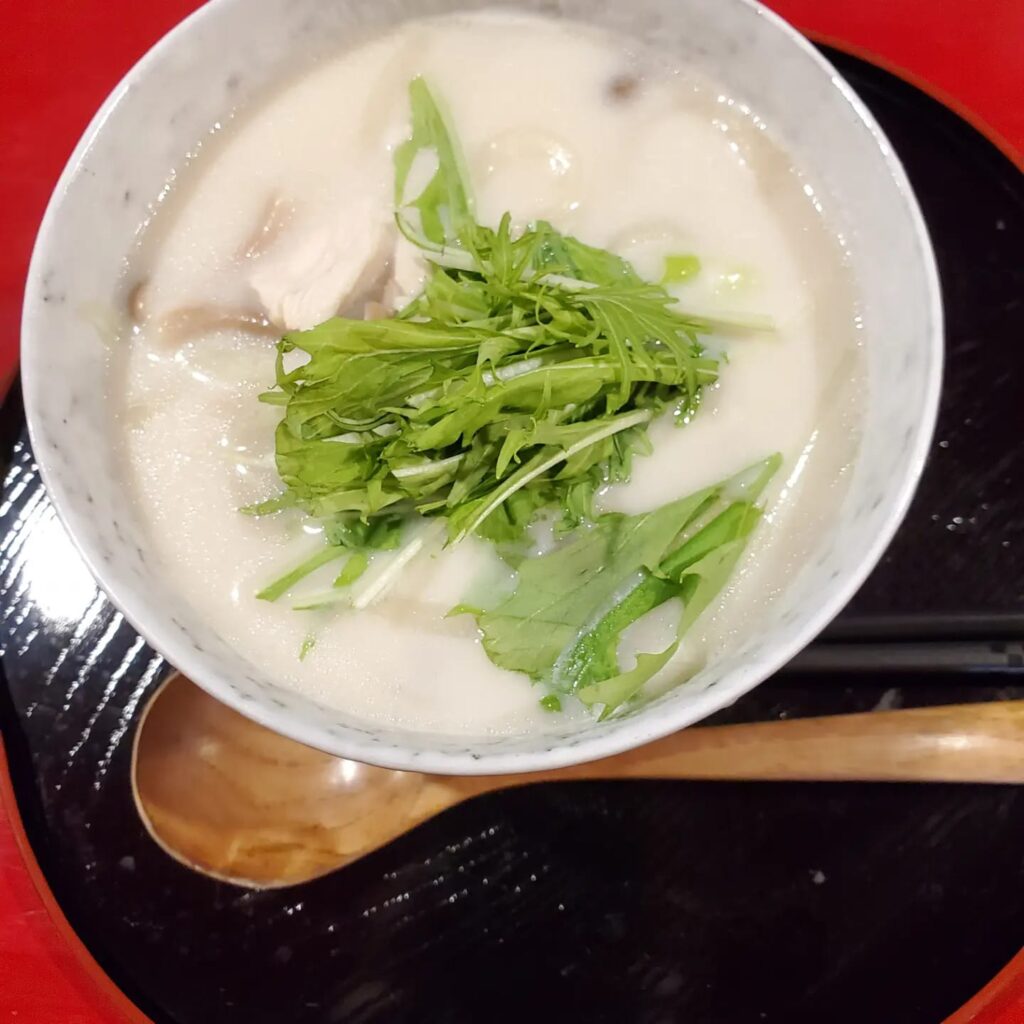 この豆乳鳥うどんは、鳥の上品なお出汁に、絶妙なバランスで加えられた豆乳がまさに逸品で、これからの寒くなる季節にピッタリのとてもヘルシーな仕上がりとなっています。